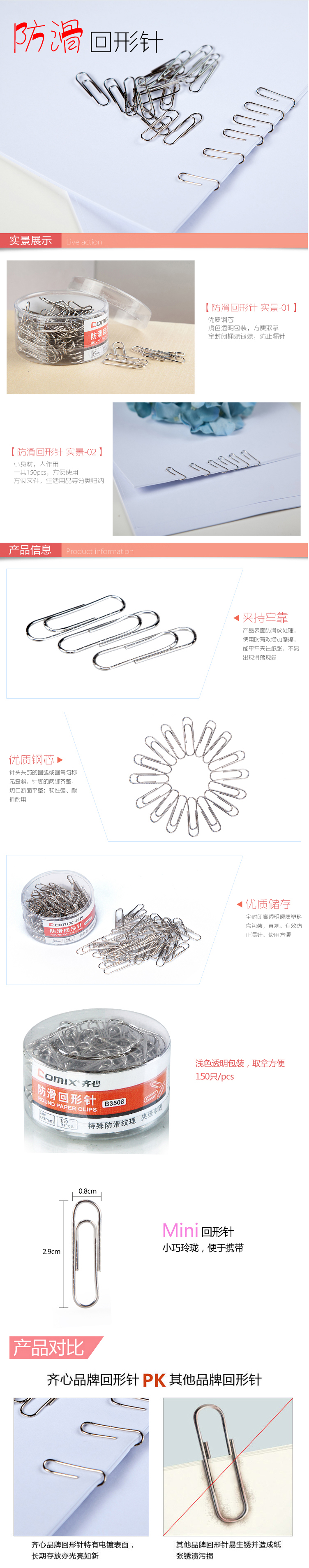 商品名称:齐心 B3508 防滑回形针