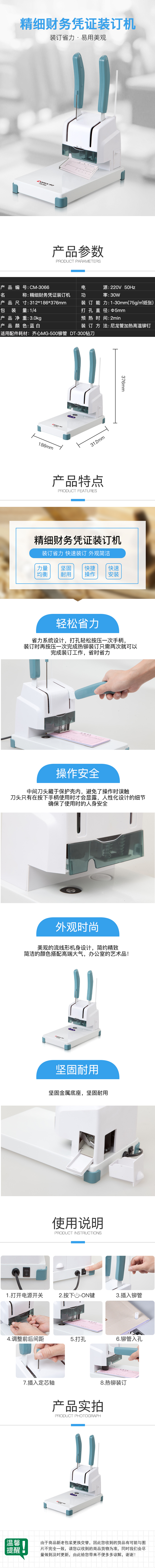 商品名称:齐心 CM-3066 精细财务凭证装订机