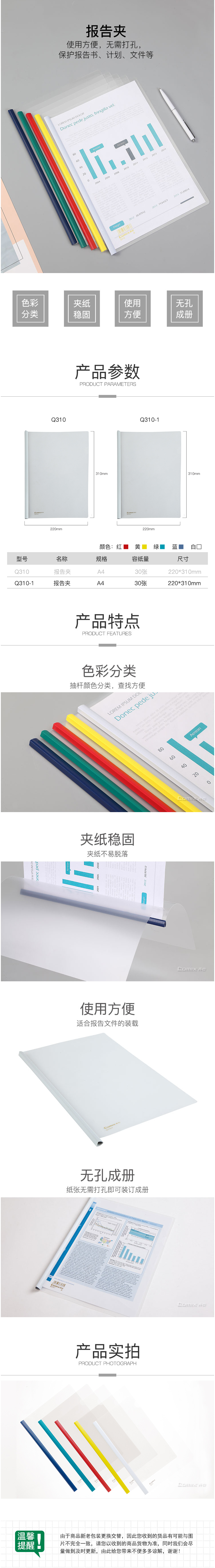 商品名称:齐心 Q310-1 超省钱报告夹 A4 抽杆式抽杆夹 30张 10个装