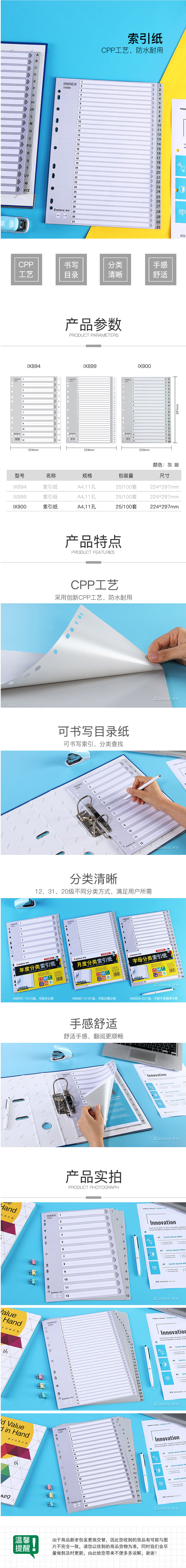 商品名称:齐心 IX900 易分类 字母索引纸 A4 21页A-Z 11孔 PP