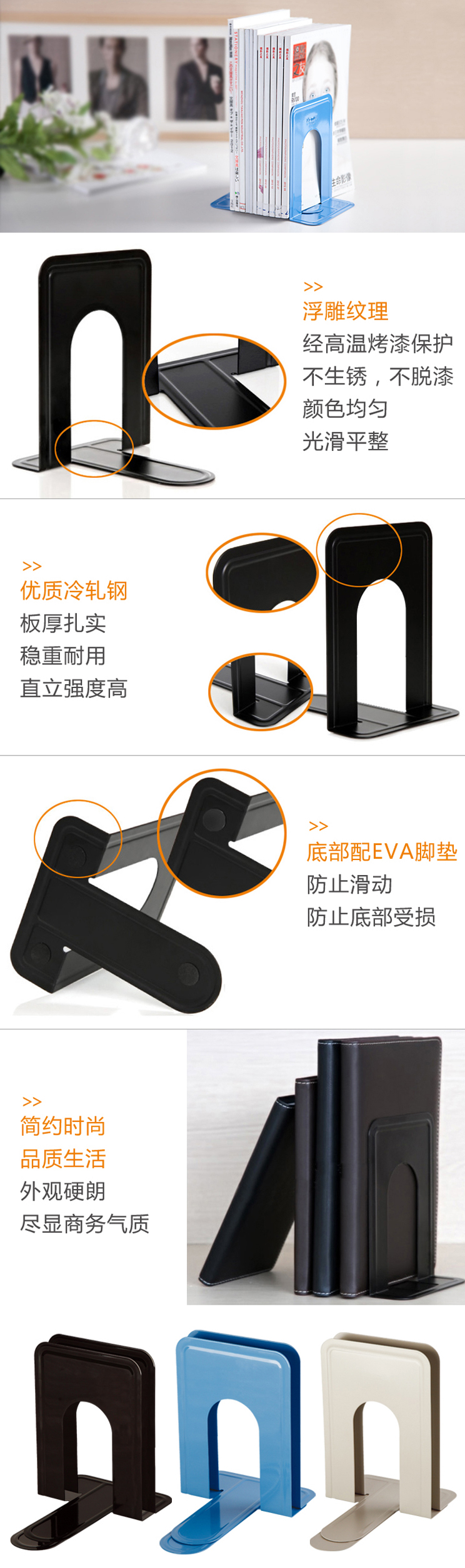 商品名称:齐心 A1104 铁书立 中号7寸(两个1套,单价为1套价格) 蓝色