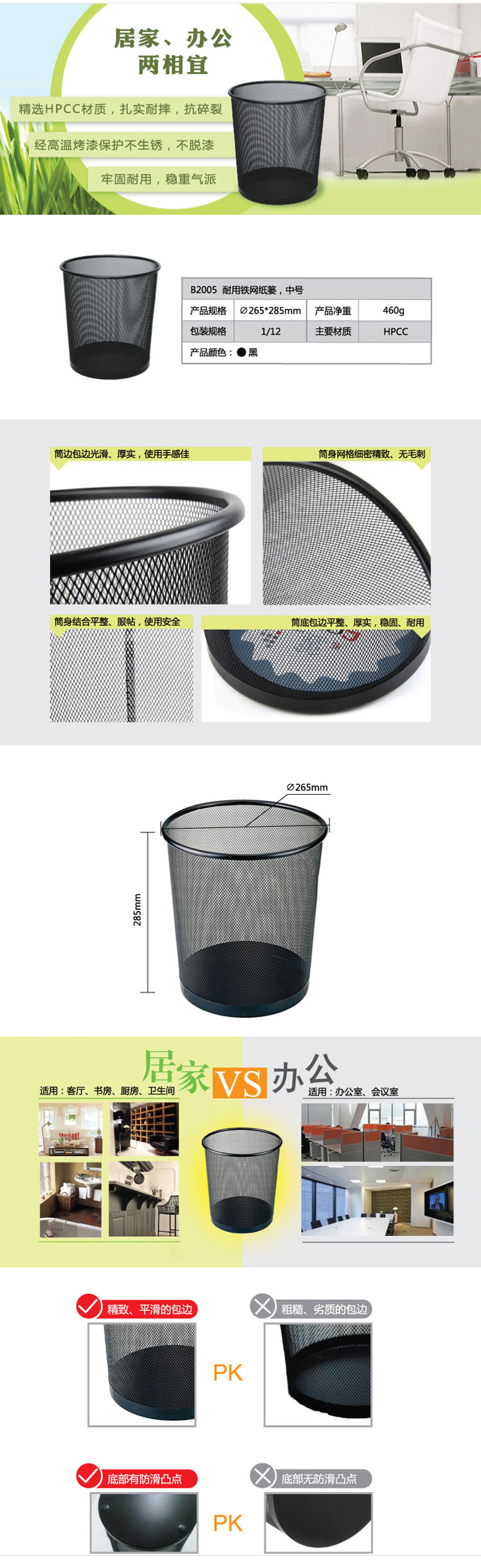 商品名称:齐心 B2005 垃圾桶耐用铁网圆纸篓 中号