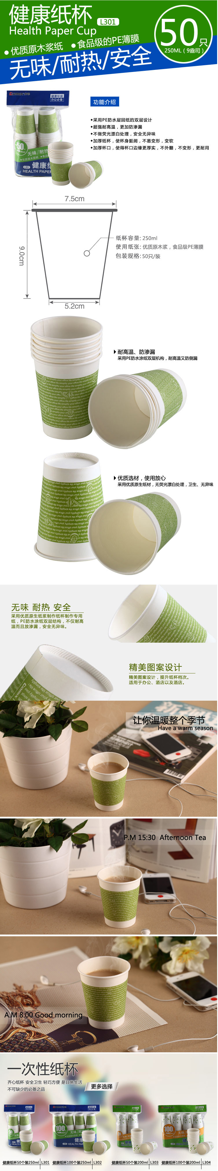 齐心 L301 健康纸杯50个装9安