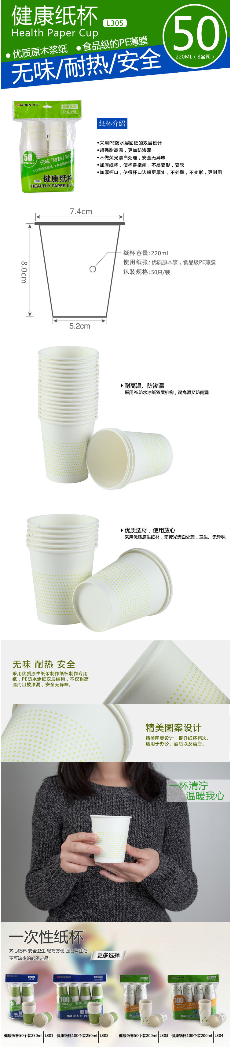 商品名称:齐心 L305 健康纸杯50个装8安
