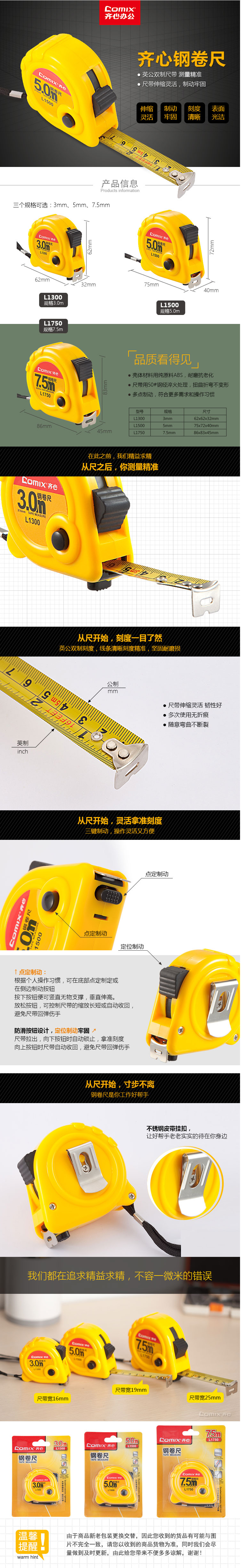 商品名称:齐心 L1500 钢卷尺 5m