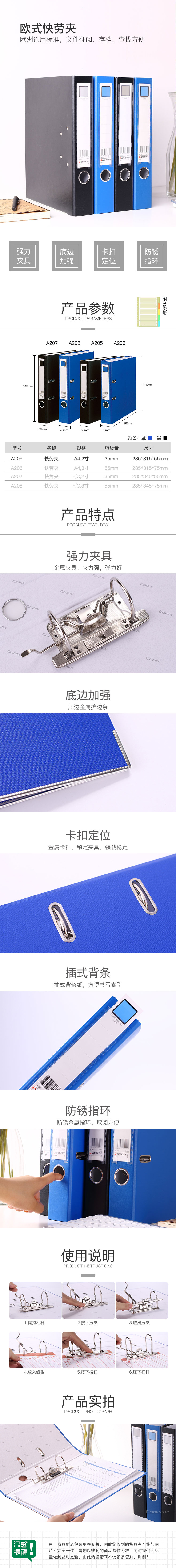 商品名称:齐心 A205 A4 2寸半包胶快劳夹
