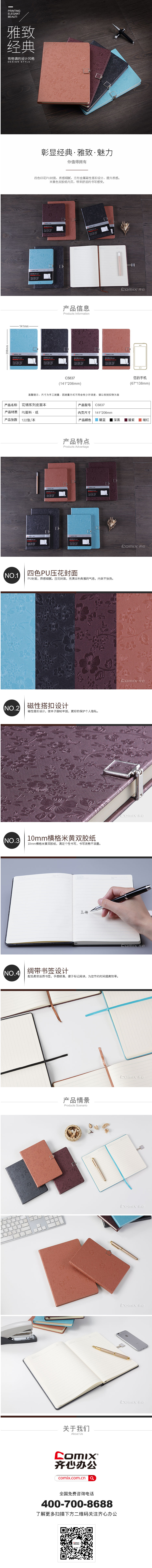商品名称:齐心 C5837 花锦系列磁扣皮面笔记本 25K 122张