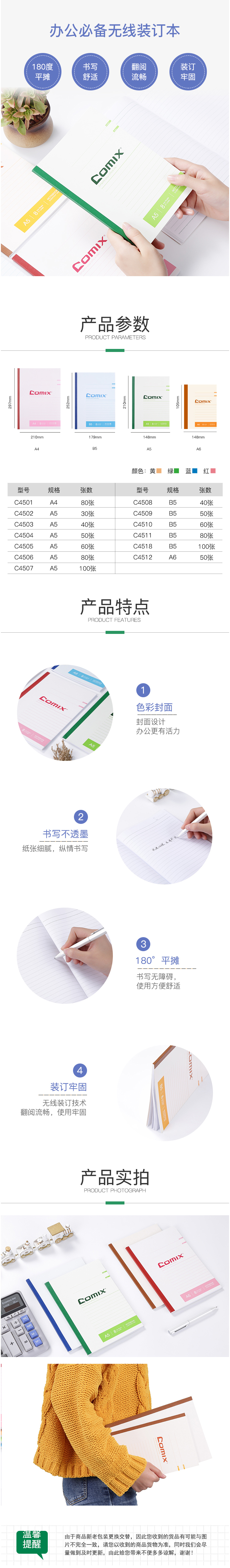 商品名称:齐心 C4506 办公必备无线装订本 A5 80张笔记本软面抄软抄本