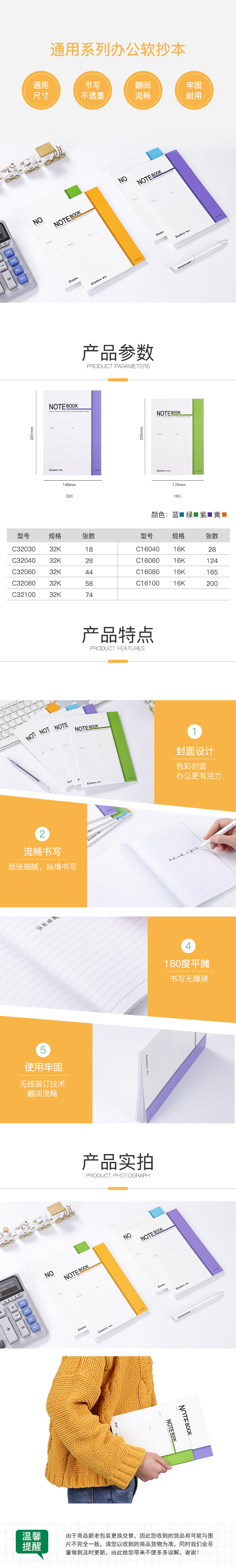 > 齐心 C32080 通用系列办公软抄本 32K 58张 配笔记本软面抄