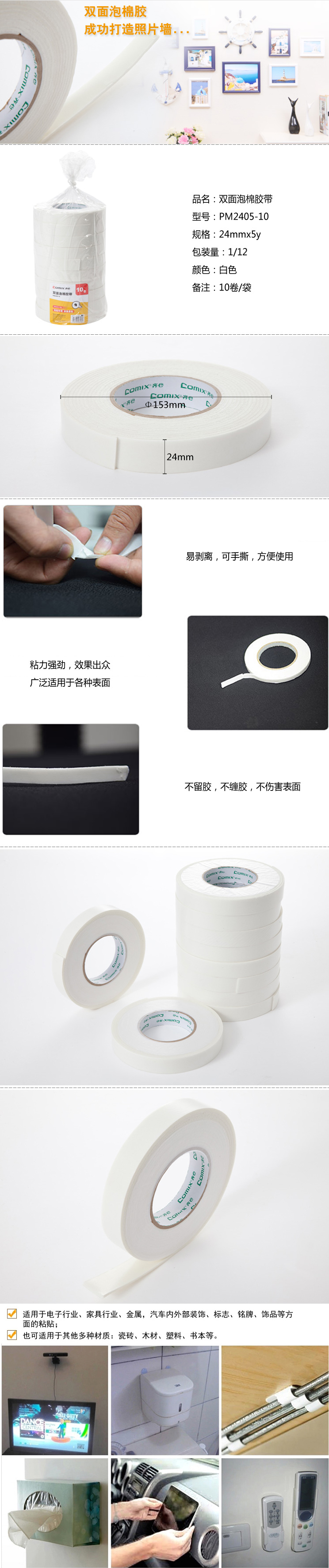商品名称:齐心 PM2405-10 双面泡棉胶带 10卷/筒 泡沫胶