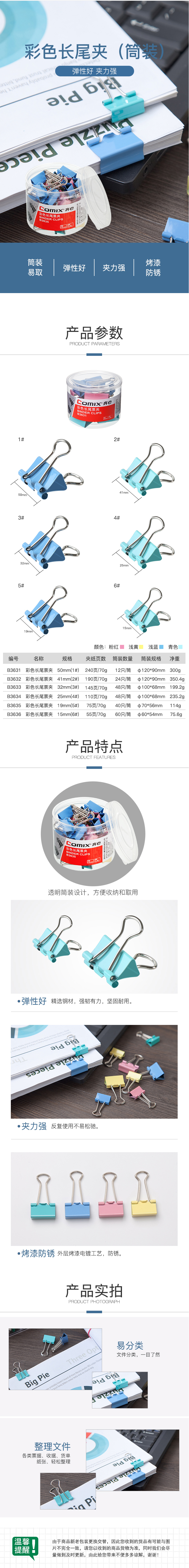 商品名称:齐心 B3633长尾夹票夹 3# 32mm 24只/筒