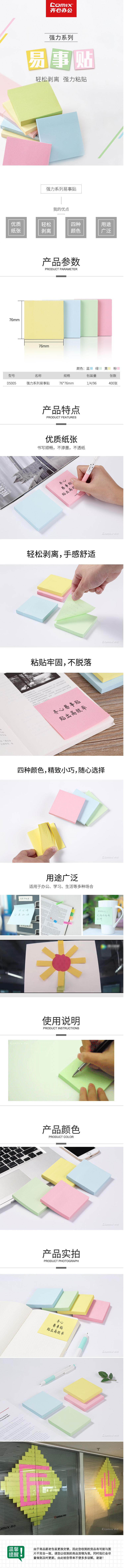 商品名称:齐心 D5005 强力系列易事贴四色混装 3X3英寸告示贴