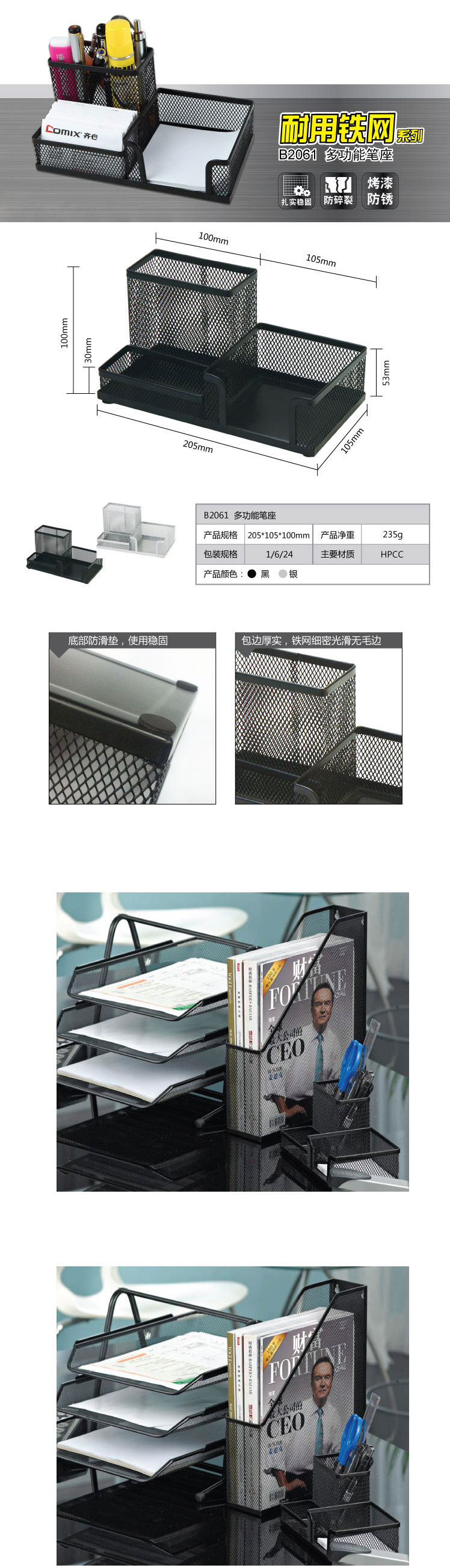 商品名称:齐心 B2061 耐用铁网多功能笔座笔筒