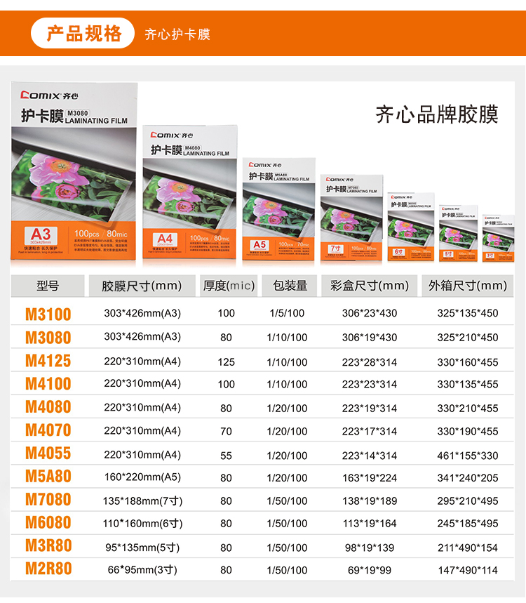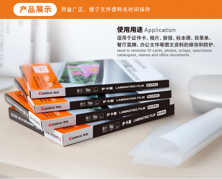 商品名称:齐心 M3R80 内销透明高清护卡膜 95*135mm*80mic