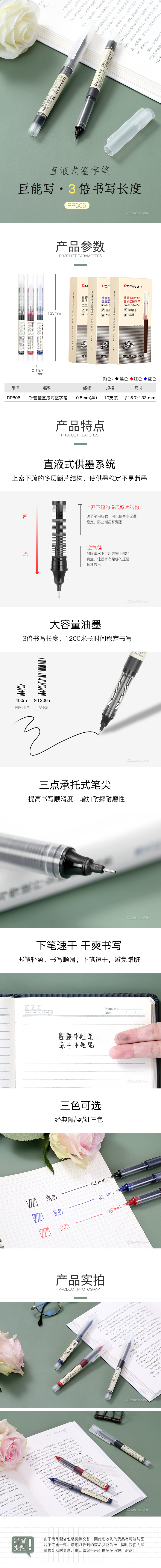 商品名称:齐心 RP606 直液式签字笔 0.5mm全针管