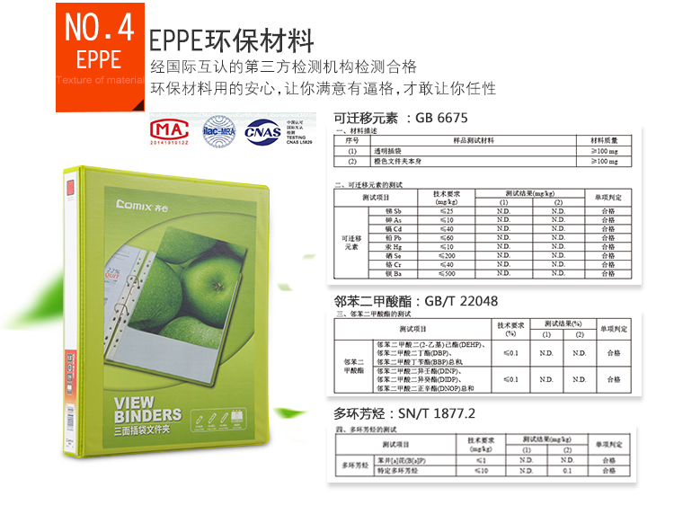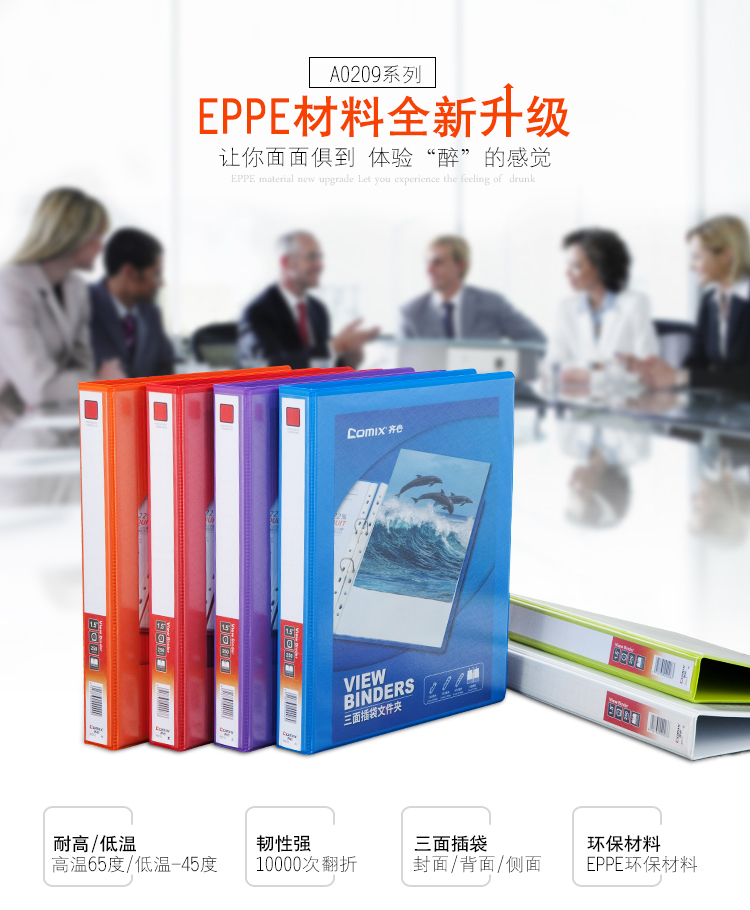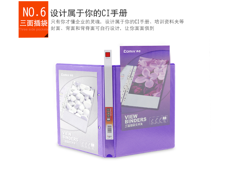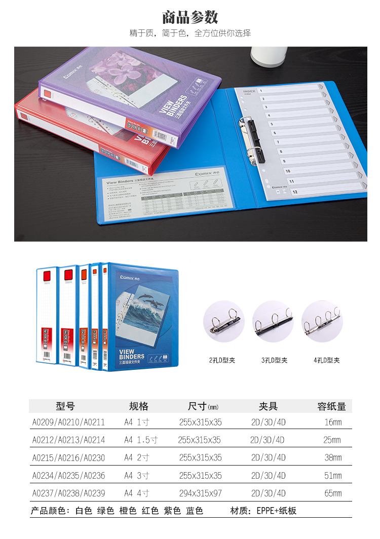 商品名称:齐心 A0214 易展示 美式三面插袋文件夹 A4 1.5寸4孔D型夹