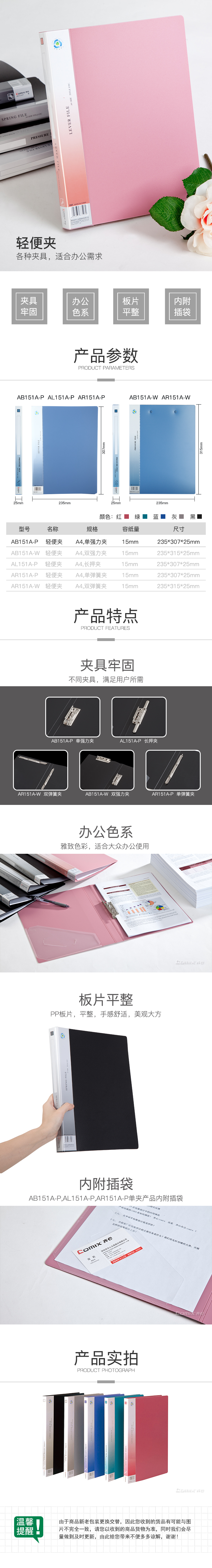 商品名称:齐心 AR151A-W 超坚固轻便夹 A4 双弹簧夹