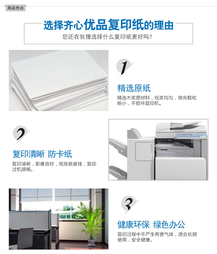 商品名称:齐心 C3674-5 优品复印纸 打印纸A4 70g