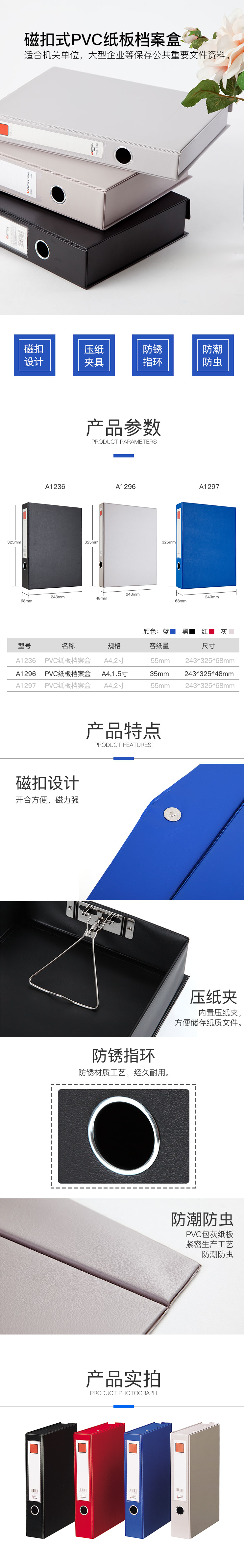 商品名称:齐心 A1296 PVC档案盒磁扣 35MM