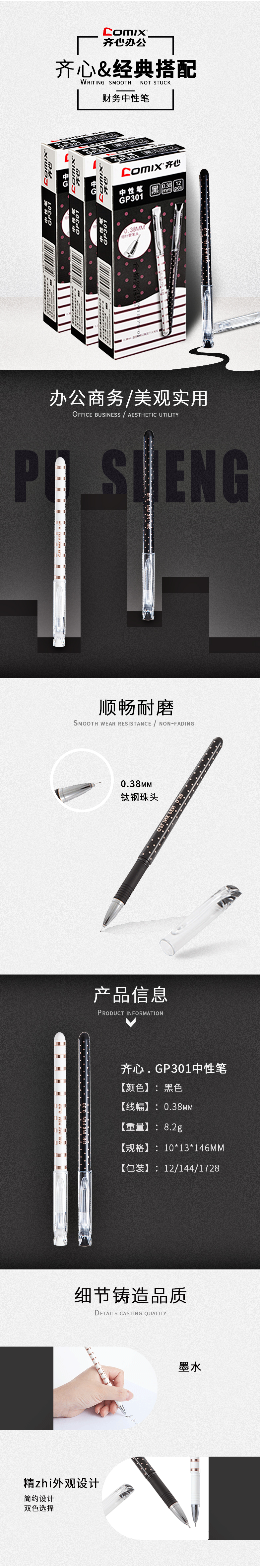 商品名称:齐心针管笔细中性笔财务办公用细笔0.38mm 钛钢珠头水笔黑色