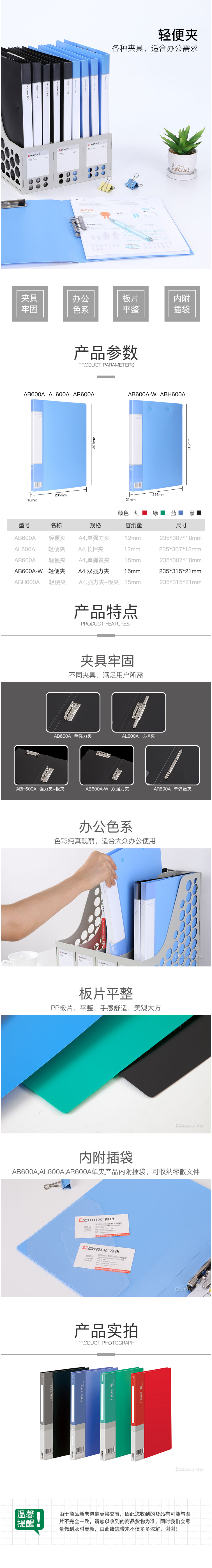 商品名称:齐心 AB600A-W 超省钱轻便夹 A4 双强力夹