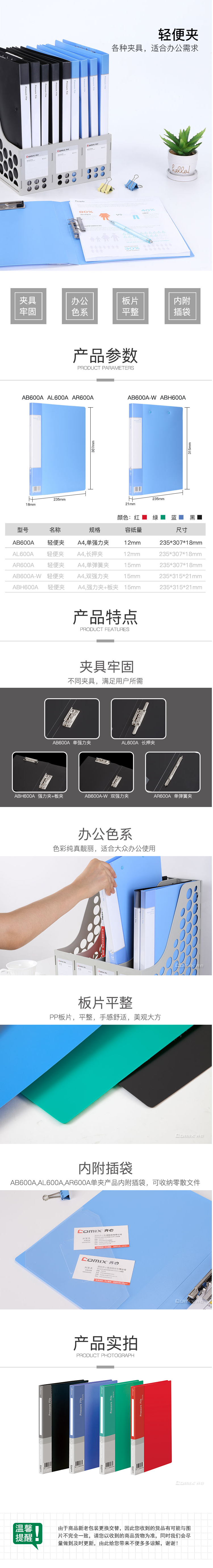 商品名称:齐心 AB600A 超省钱轻便夹 A4 单强力夹
