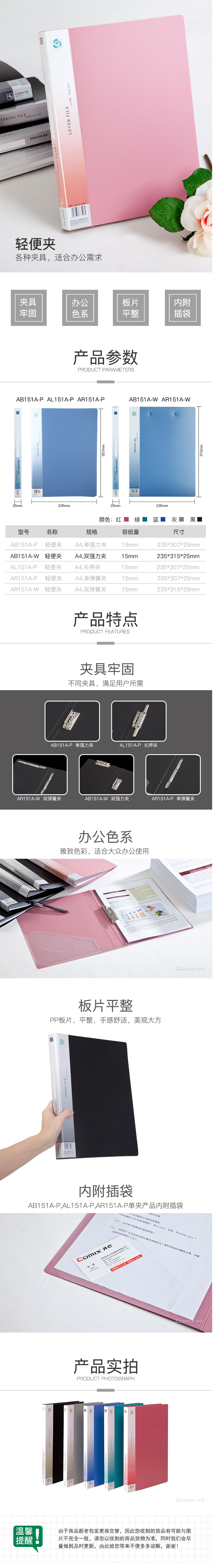 商品名称:齐心 AB151A-W 超坚固轻便夹 A4 双强力夹