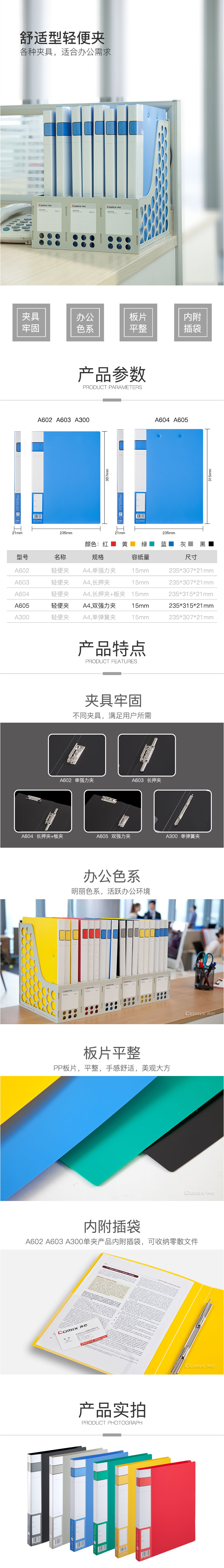 商品名称:齐心 A605 办公必备轻便夹 A4 双强力夹